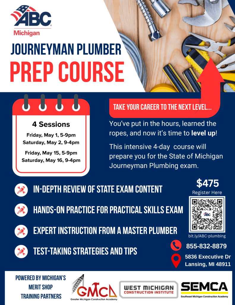 Are you ready to take your plumbing career to the next level? Take part in the 4-session Journeyman Plumber Prep Course this May!